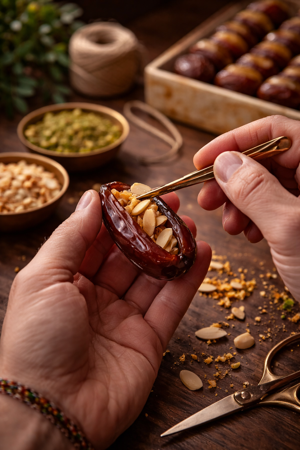 Participez à nos ateliers et formations dédiés aux dattes premium et gourmandises et maîtrisez les techniques de sélection, de fourrage et d’enrobage, ainsi que la création de coffrets premium, packaging valorisant. Cahier, certificat et coffret dégustation inclus.